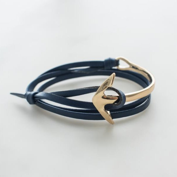 Black leather bracelet with gold or silver anchor for men.